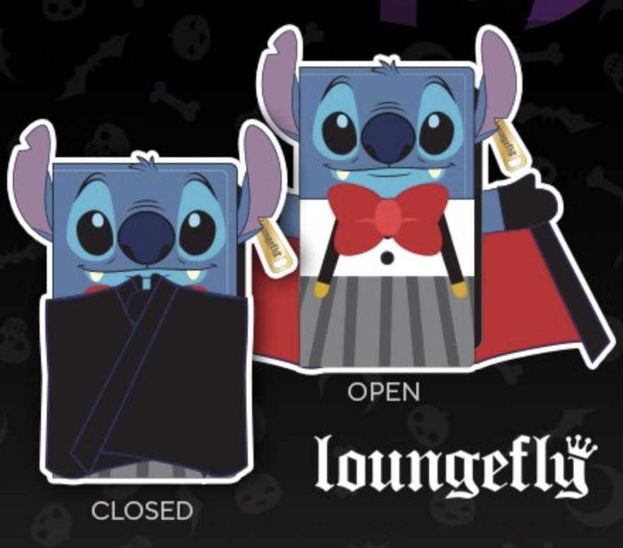 - Over at Loungefly, a new zip wallet showcases Experiment 626 as a classy vampire complete with bowtie and cape! His cape will fold over the front of the wallet and can be opened to reveal his fancy outfit.