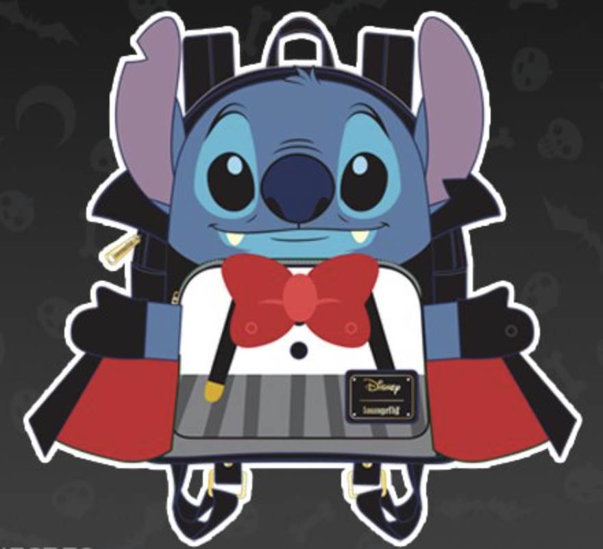 - A matching mini backpack also shows Stitch in his vampire getup.