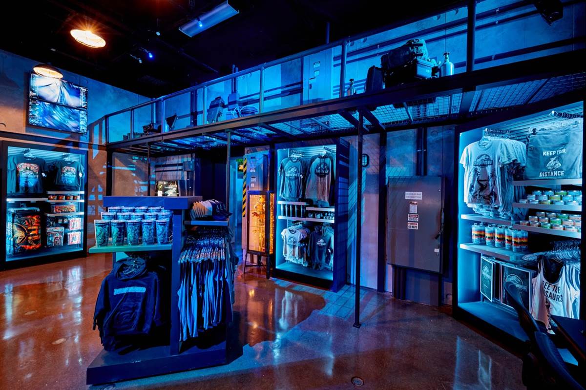- Control Room: The first room transports guests to the Jurassic World VelociCoaster control room, where they’ll analyze a variety of dinosaur vitals while they shop new merchandise centered around the thrilling new coaster experience.