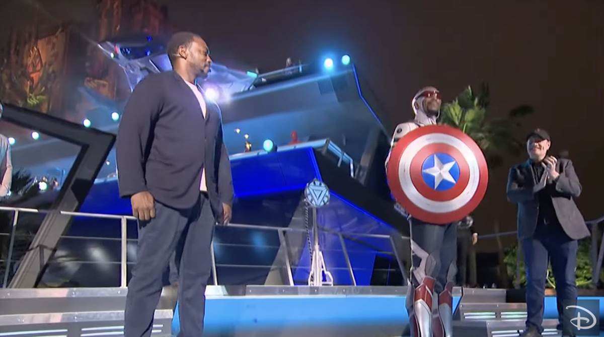 - The Avengers Campus opening ceremony had guest stars make appearances both in-person and virtual. Anthony Mackie, who plays Sam Wilson in the Marvel Cinematic Universe, introduced the new Captain America and even passed off the iconic shield.