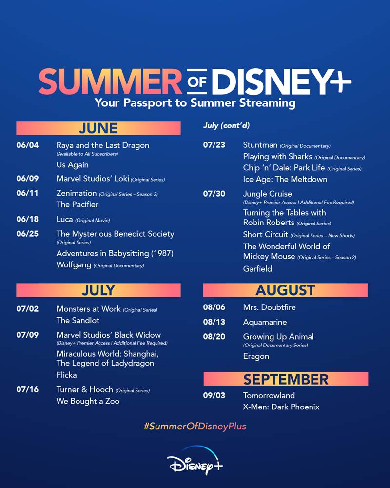 - Other films and series coming include Loki, Monsters at Work, Luca, Black Widow, Jungle Cruise, and a whole lot more.