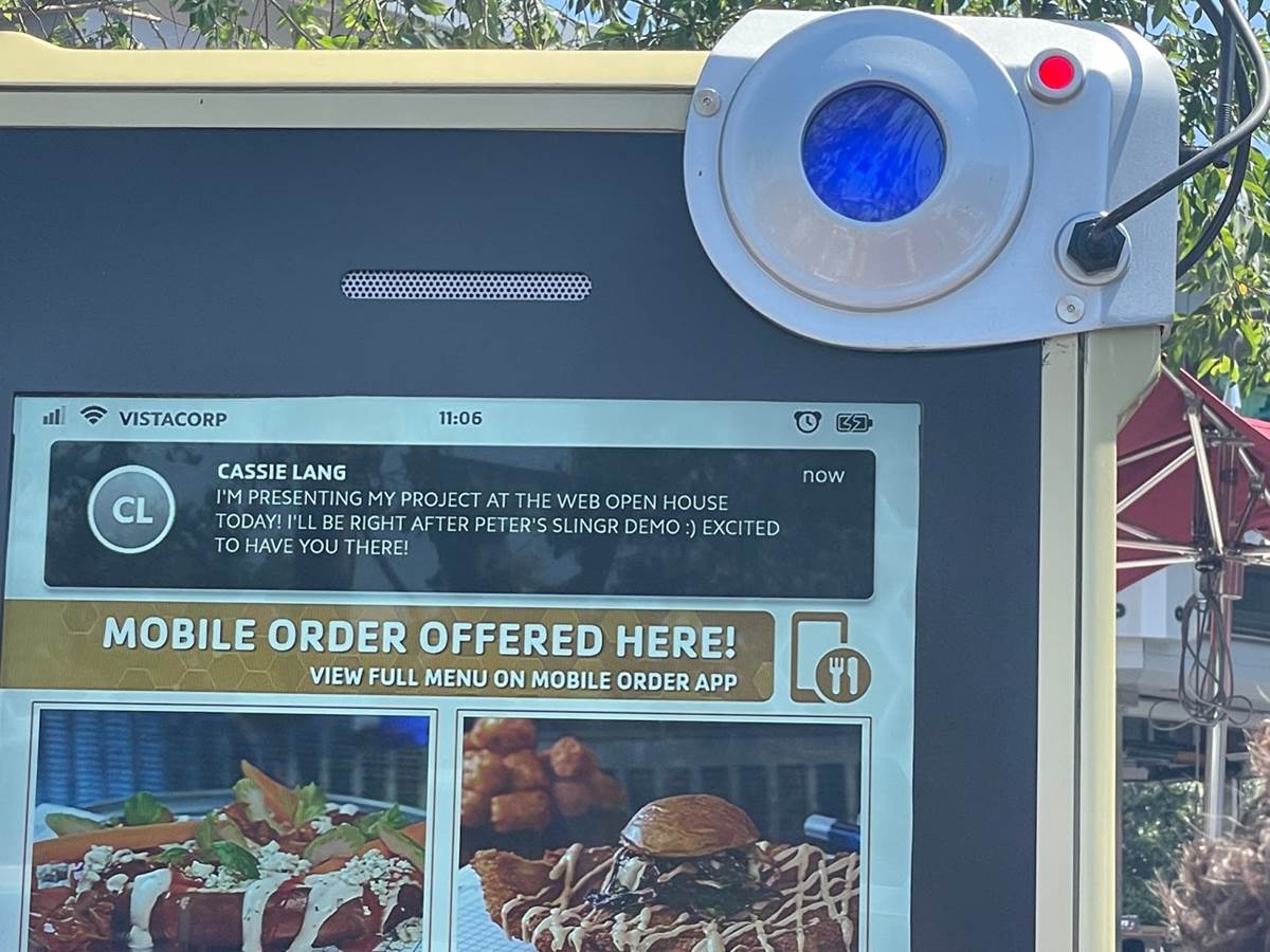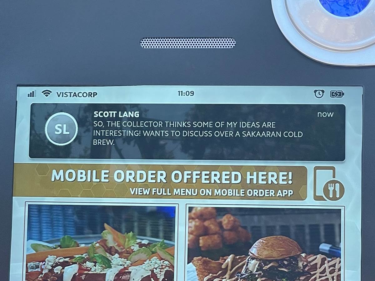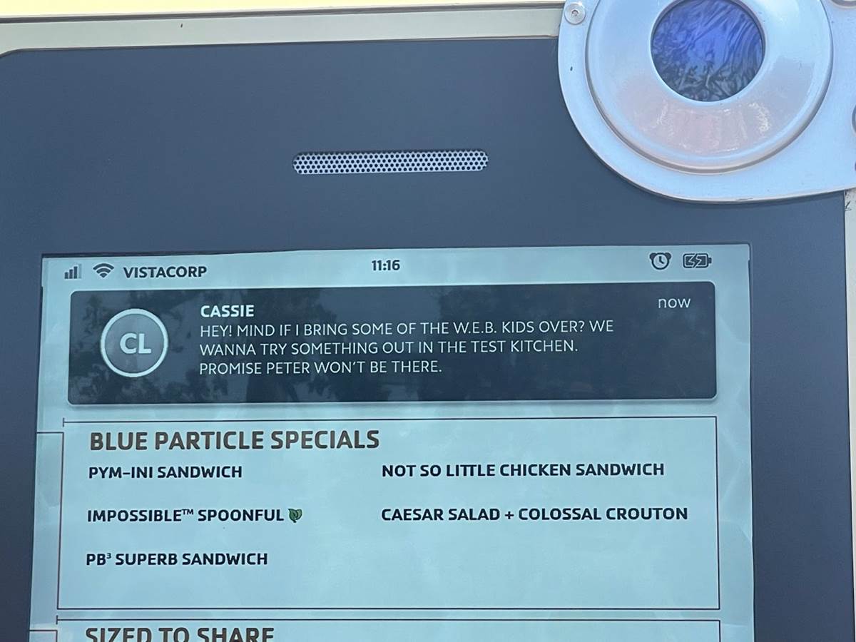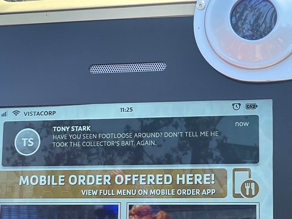 Near Pym Test Kitchen and the Pym Tasting Lab, you’ll see a digital menu board showing you all the offerings available via a giant smartphone, but you’ll also notice that smartphone receiving some notifications from Marvel characters.