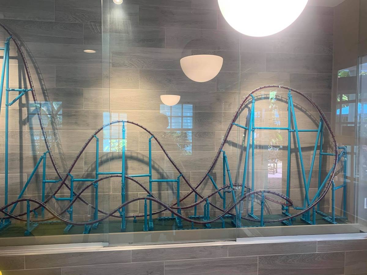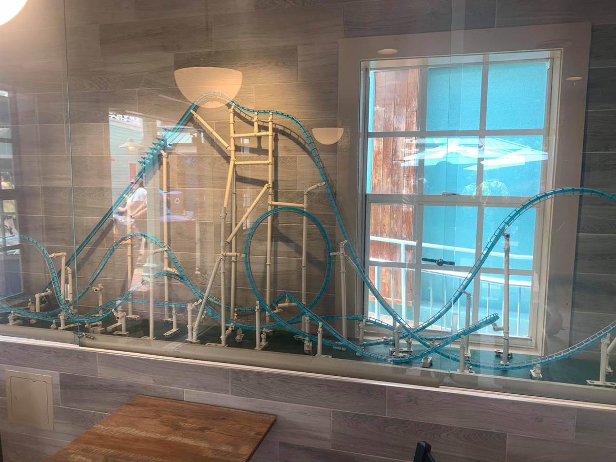 - The location is themed to the park’s roller coasters, with working scale models of Kraken and Mako, and historical construction photos of other SeaWorld coasters.
