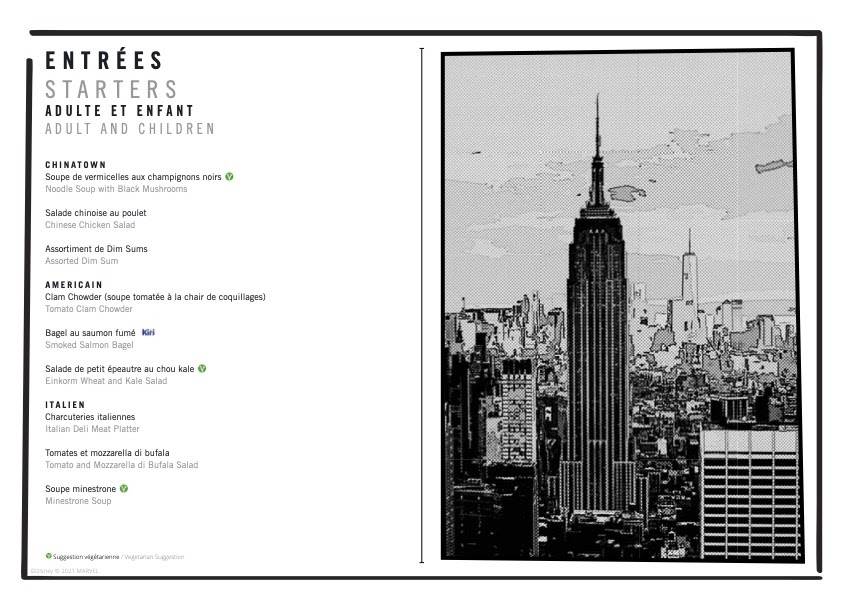 - Guests can now get a look at the restaurant menus at Disney's Hotel New York - The Art of Marvel including the Downtown Restaurant and the Manhattan Restaurant.