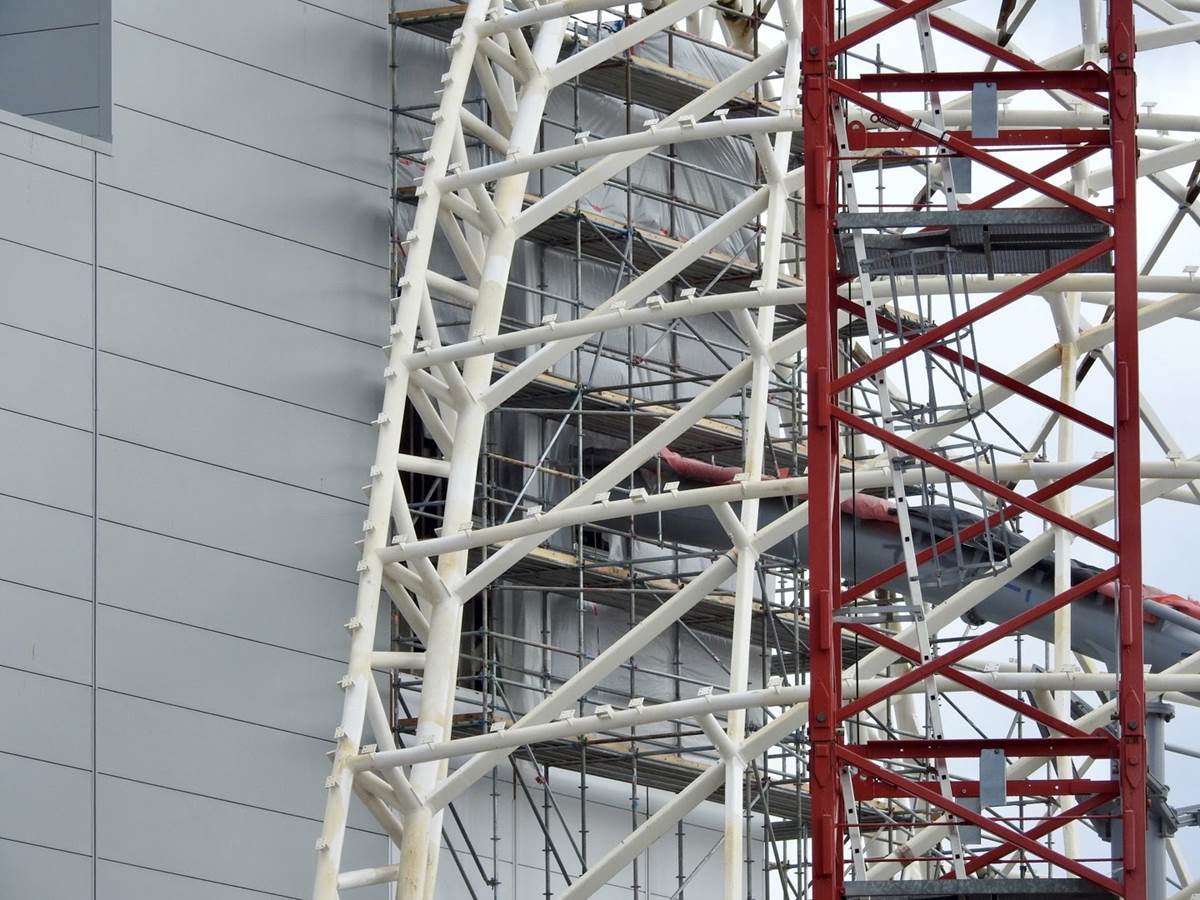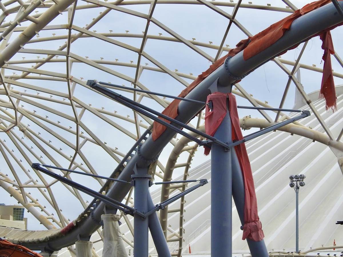 - Previously we noted that the holes where the coaster goes from the exterior portion of the track returning to the interior show building have been sealed, not just a shut storm door or anything, but completely sealed to seamlessly match the rest of the exterior of the building. Those entry and exit points are once again open.