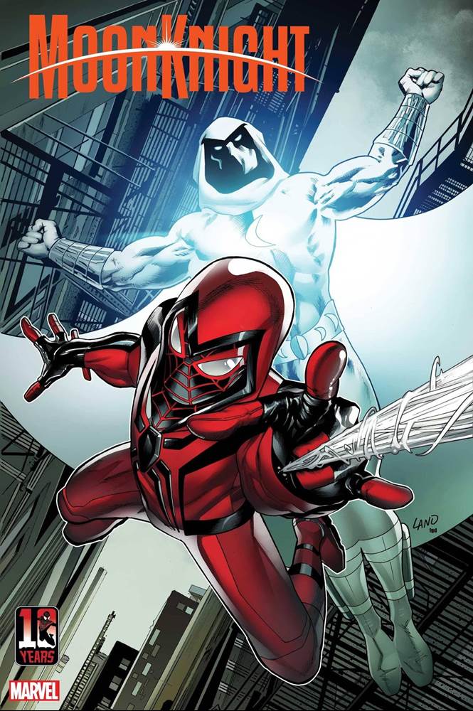 - MOON KNIGHT #3 MILES MORALES 10th ANNIVERSARY VARIANT COVER by GREG LAND with colors by FRANK D’ARMATA