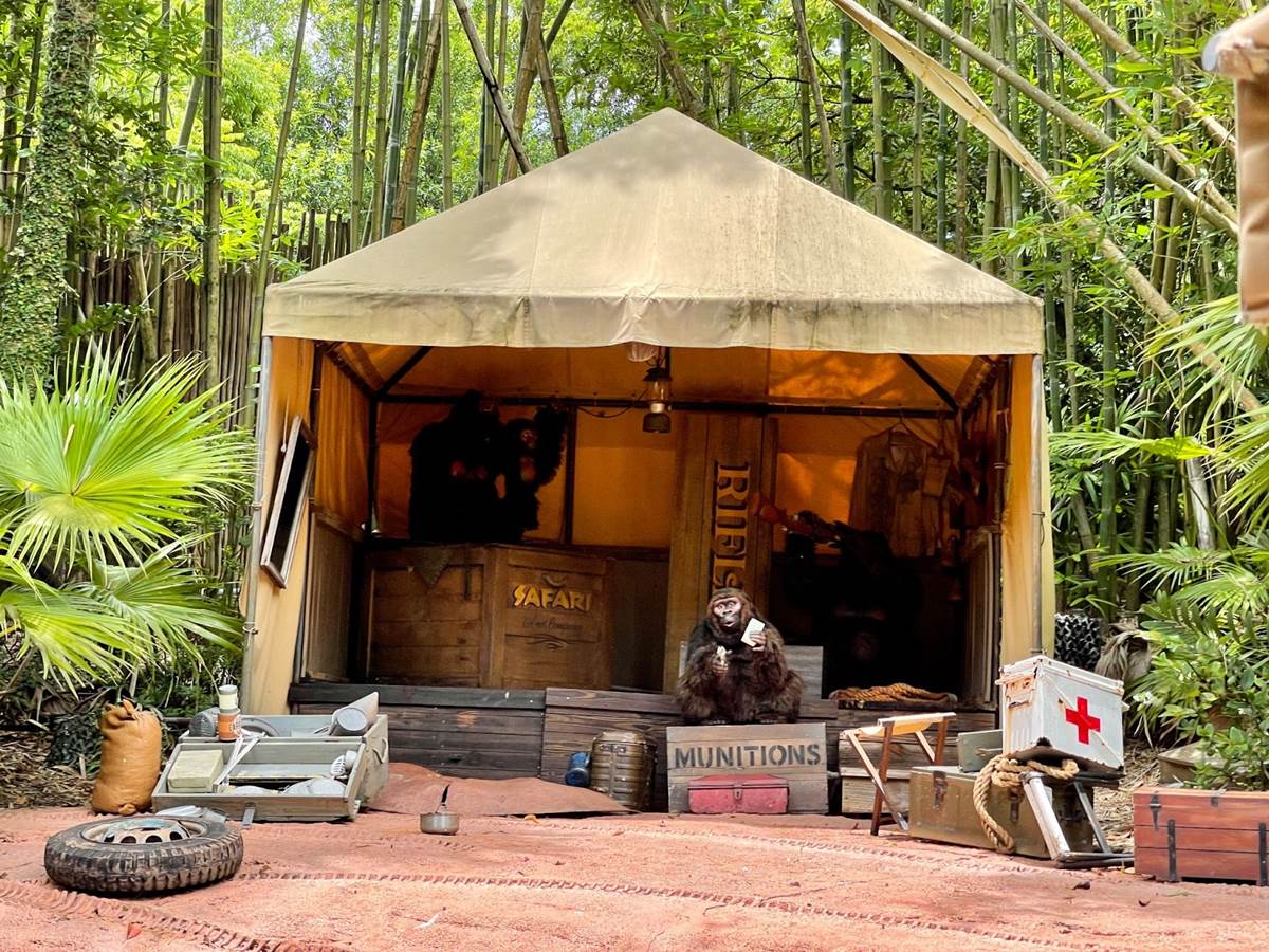 It looks like the gorillas have vacated the explorer’s camp. Now who’s going to get that Jeep to “turn over”?