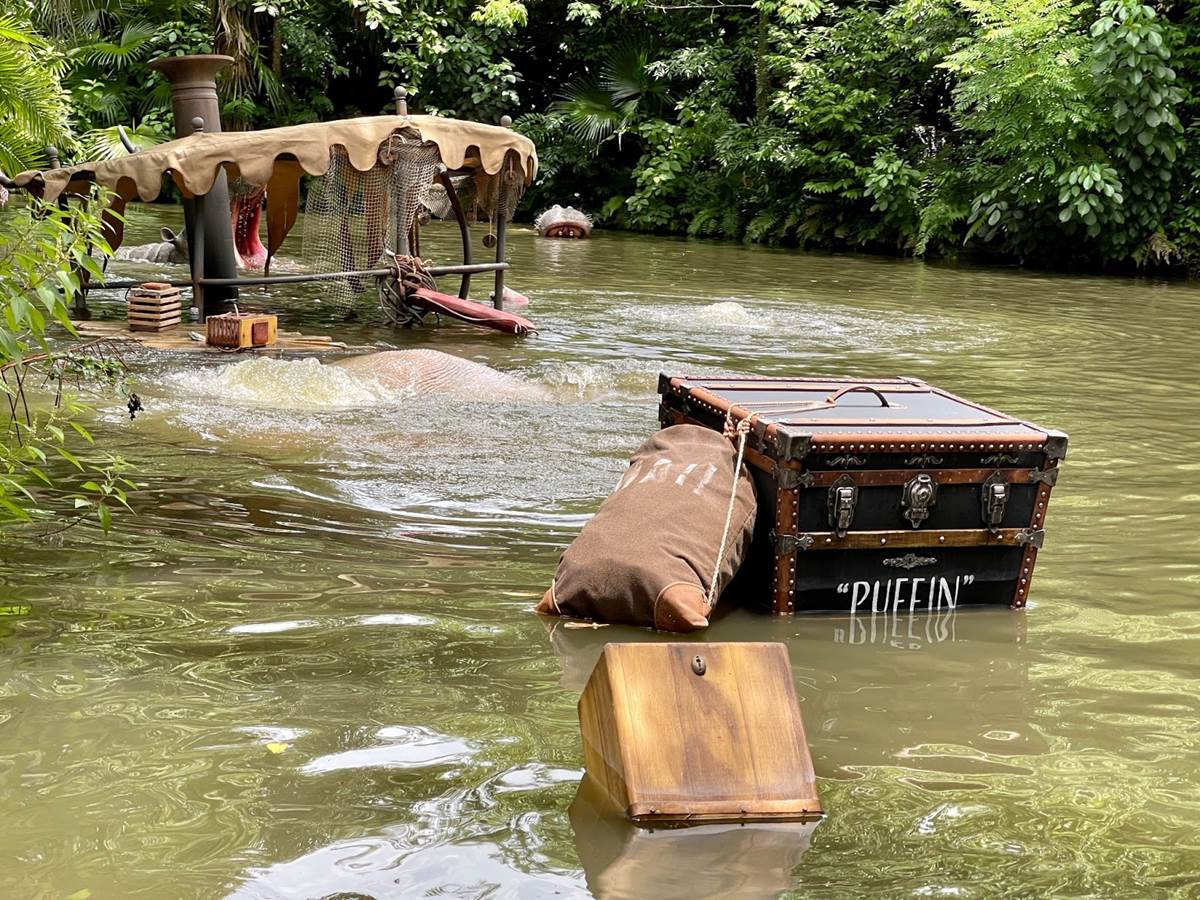 Could this be what happened to Felix’s boat? A new sunken boat is now on display in the hippo pool, with floating luggage sailing away.