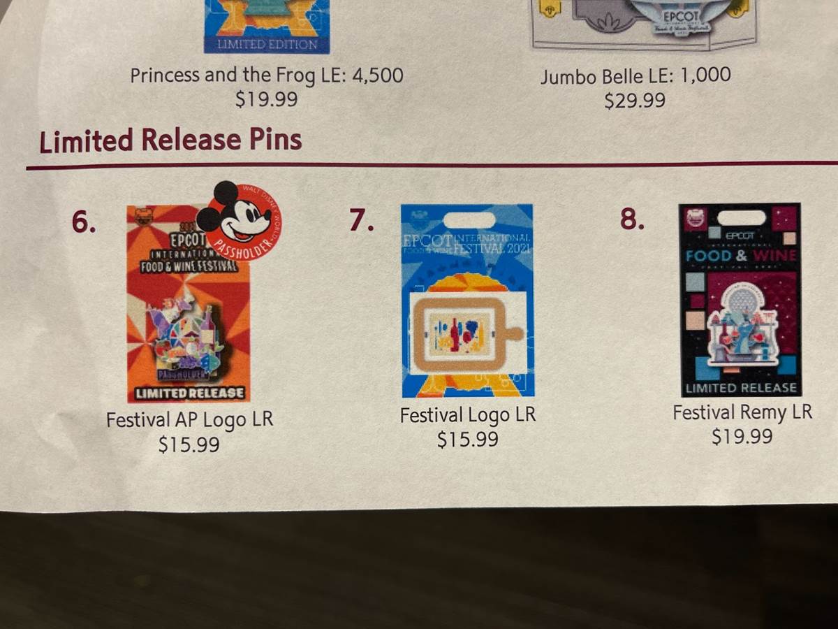 While we couldn’t get any photos of the pins themselves, EPCOT also has a variety of limited edition and limited release pins.