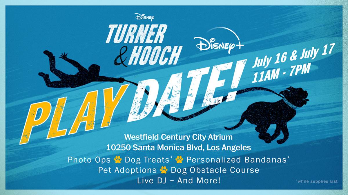 Disney Fans looking forward to the new Disney+ series Turner & Hooch can enjoy photo ops, dog treats, and more at Westfield Century City on July 16 and 17.