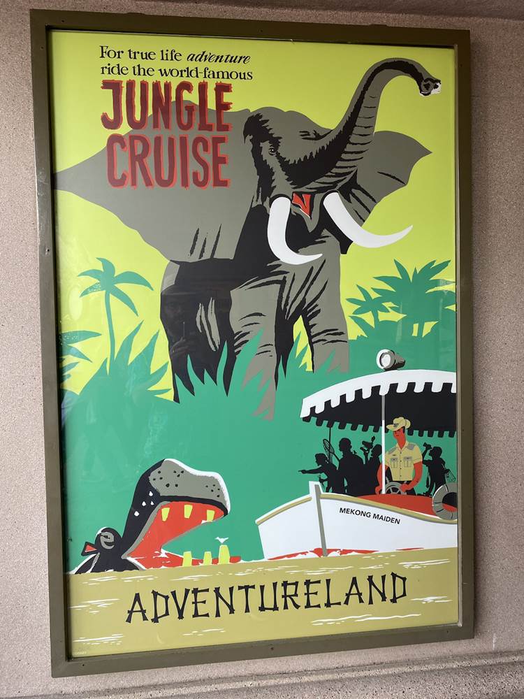 - The new poster harkens back to the original opening day attraction poster for the Jungle Cruise, complete with elephant, hippo and boat. The boat in the original opening day poster is named the “Congo Queen” (which fans may recall was the boat painted gold in celebration of Disneyland’s 50th anniversary in 2005), and the new poster features the name “Mekong Maiden” adorned on the boat. Not only that, the original referred to the attraction simply as the Jungle River, saying “For true life adventure, ride the Jungle River,” with the new poster saying nearly exactly the same thing, but changing it slightly to “For true life adventure, ride the world-famous Jungle Cruise.”