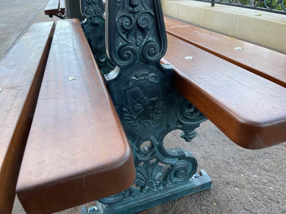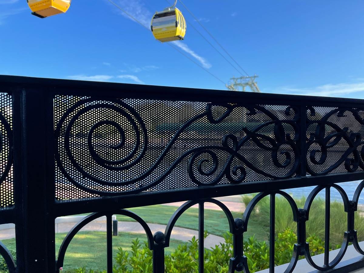 While we couldn’t take photos of what was behind the wall awaiting Guests when the attraction opens on October 1, 2021 in celebration of Walt Disney World’s 50th anniversary, Veronica did point out some details surrounding the area including the railings and benches that Guests can currently see while visiting EPCOT.