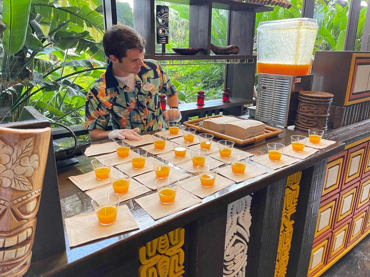 Inside the hotel, complimentary POG juice is being given away in celebration of the reopening. It may not be a churro, but it’s very tropical.