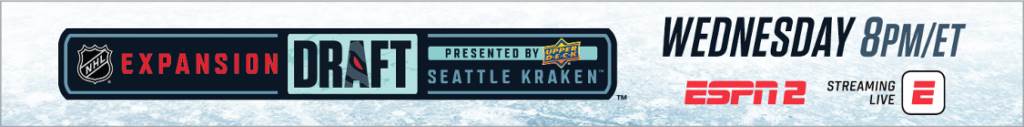- The 2021 NHL Expansion Draft presented by Upper Deck airs Wednesday, July 21, at 8 pm ET on ESPN2 in the U.S. live from Seattle.