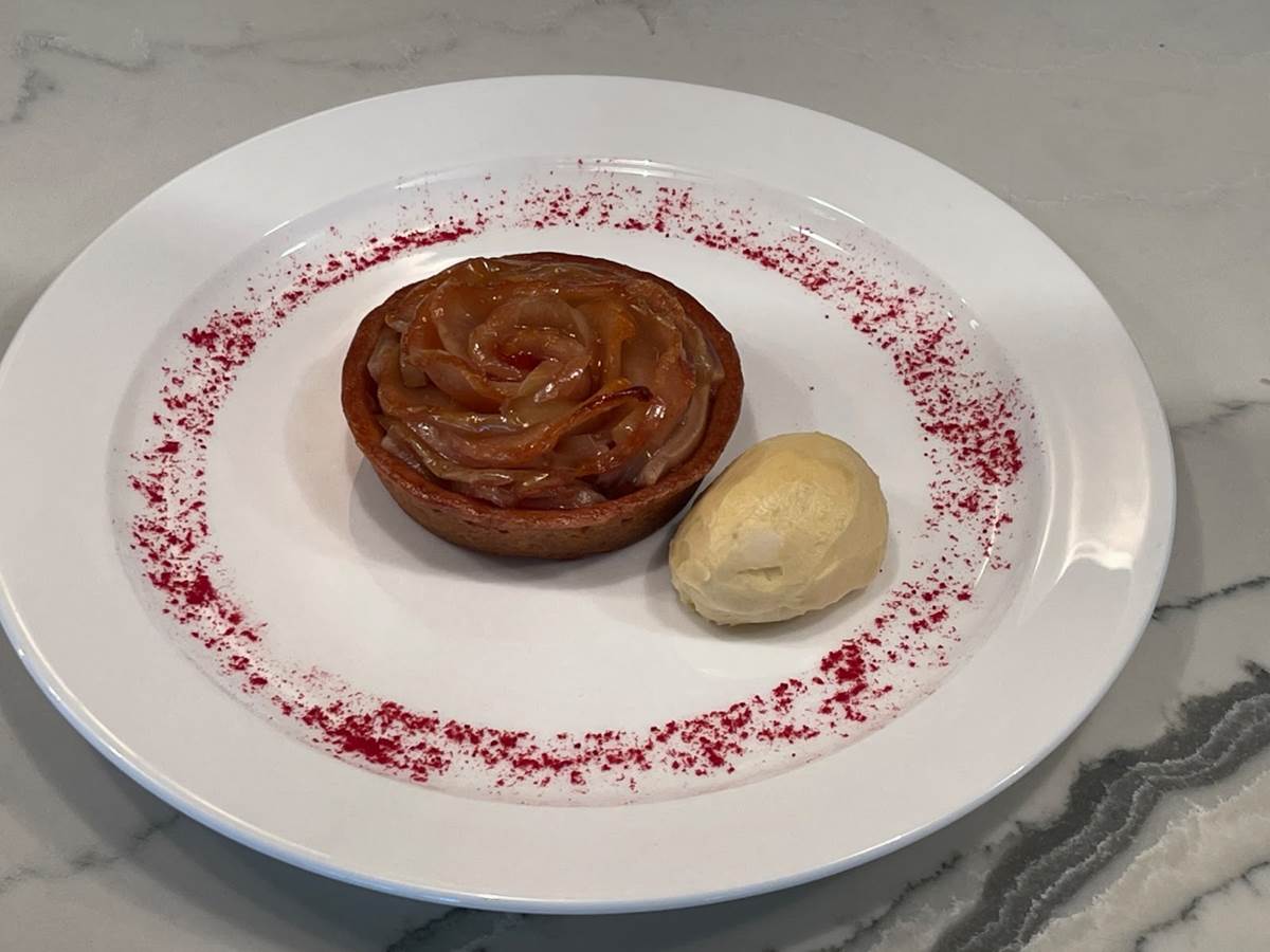 We couldn’t leave without checking the desserts as well. This is a vegan apple rose served with coconut frozen milk on the side.