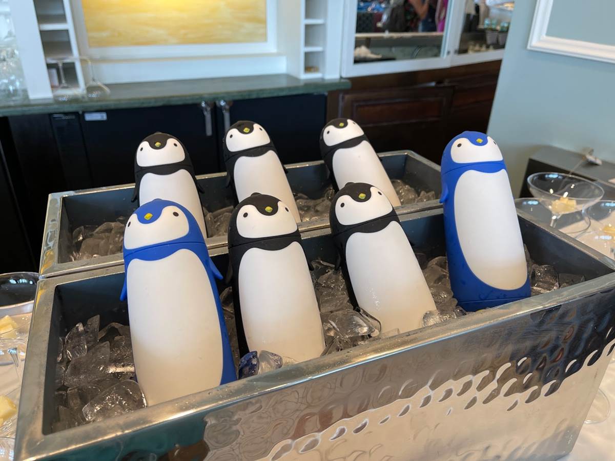 Zero-proof cocktails include the purple penguin which is served from a penguin thermos and has pineapple peach, lemon, lavender, and grenadine topped with house-made seltzer.