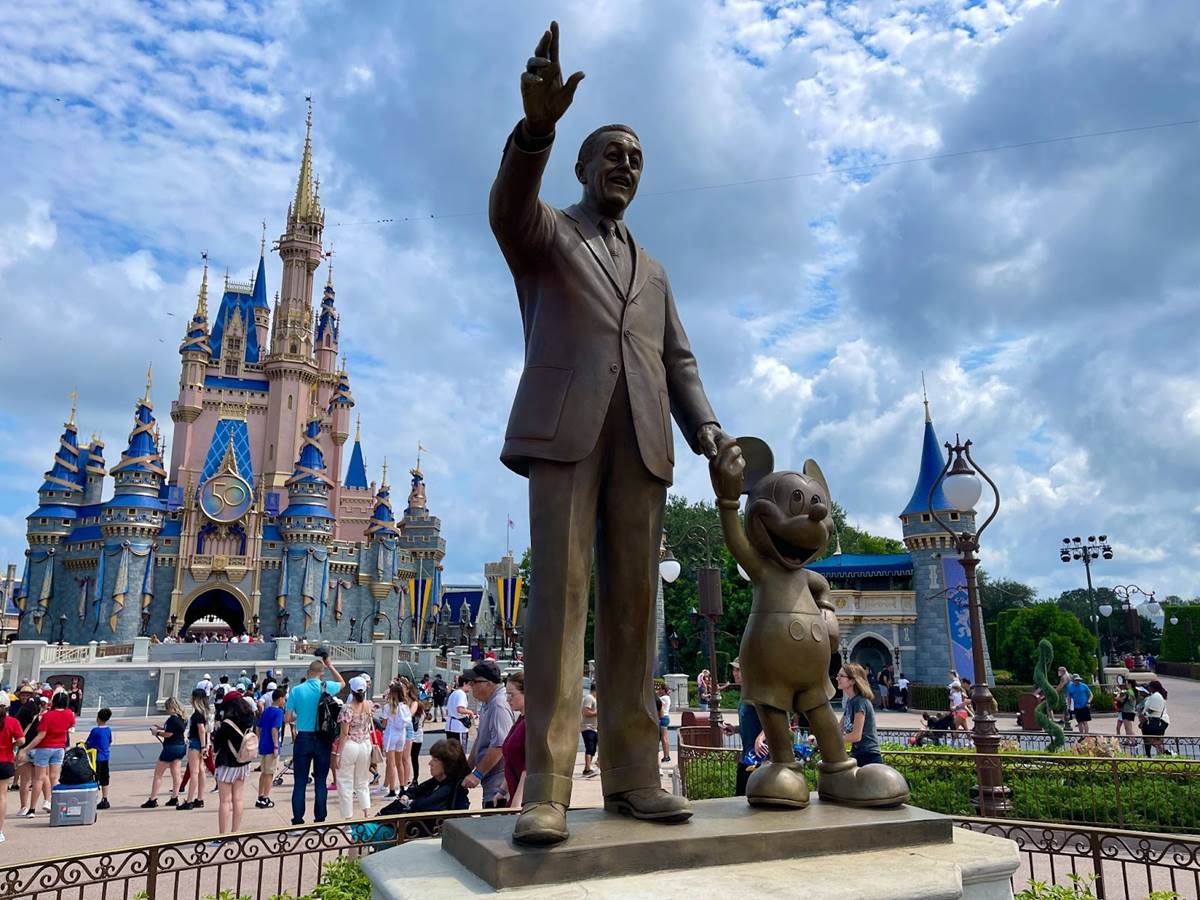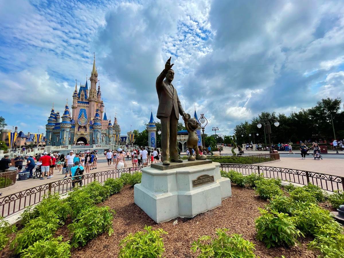 - Guests visiting the Magic Kingdom will find a sign next to the iconic Partners statue in front of Cinderella Castle, informing them that it is currently “receiving routine care in preparation for Walt Disney World’s 50th Anniversary.”