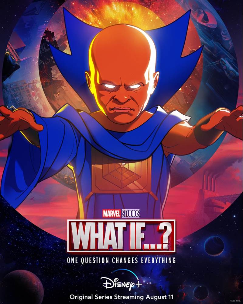 - A new poster has been released for the upcoming series What If…? featuring The Watcher (voiced by Jeffrey Wright) as we get closer to its release on Disney+ on August 11, 2021.