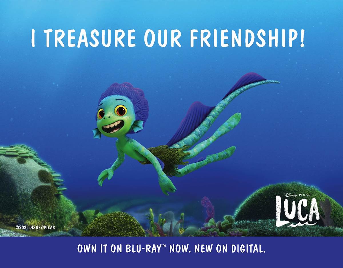 - Celebrate International Friendship Day with an all-new Luca in-home trailer (above). Embark on a fun-filled adventure of friendship on the Italian Riviera when Disney and Pixar’s Luca splashes onto Digital, 4K Ultra HD, Blu-ray and DVD this Tuesday, Aug. 3.