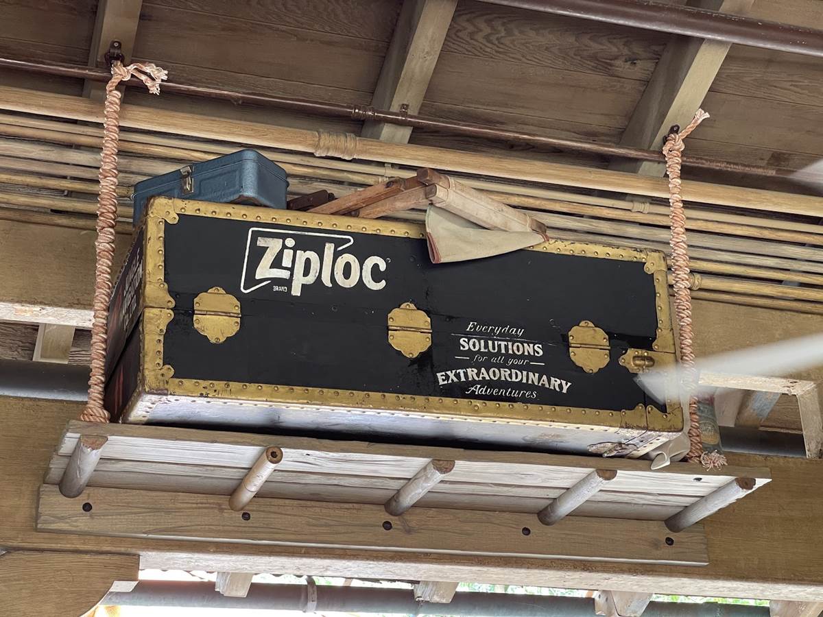 - We also noticed a new reference to Ziploc bags in the queue. Visitors may recall a time not too long ago where Ziploc offered specially-themed Ziploc bags to help guests keep their valuables dry while boarding Splash Mountain. We did not see anything special like that at the Jungle Cruise, aside from a little bit of product placement.