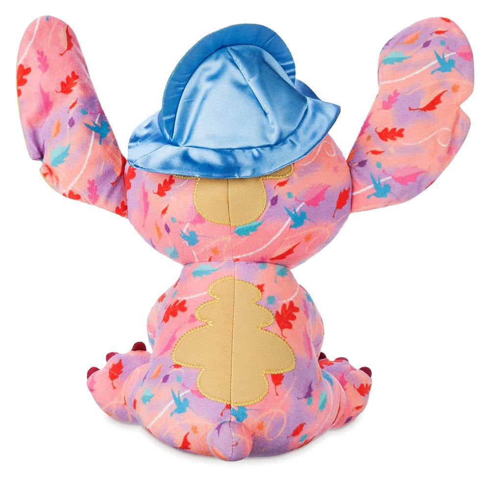 It looks like Stitch has gotten caught up in a mess of lush plant life! He’s covered in a pattern of green leaves accented by silhouettes of Baloo and King Louie who are dancing their way through the jungle. Stitch’s ears and torso feature a ribbed yellow material and to top it off, he’s wearing a banana on his head!