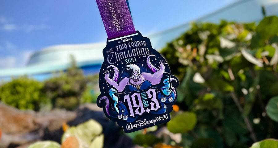 “A challenge fit for a Sea Queen. Make waves when you complete 19.3 miles as part of the Disney Two Course Challenge featuring Ursula from Disney’s The Little Mermaid.”