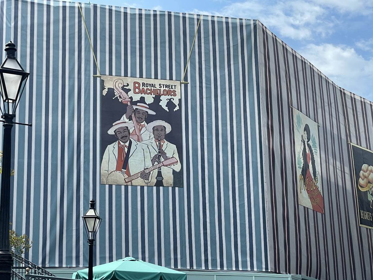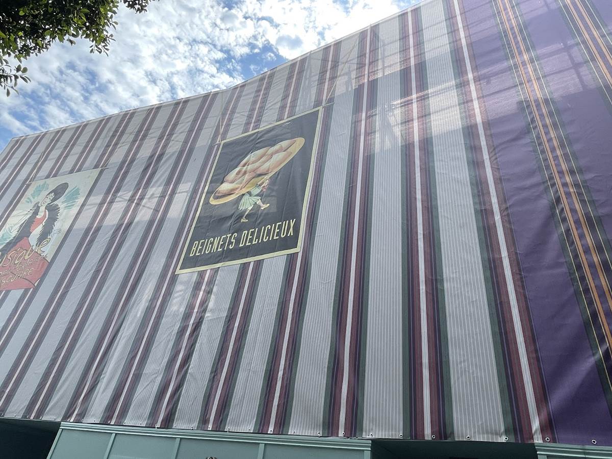- The tents are covered in themed art as well, including posters for beignets as well as the Royal Street Bachelors who can usually be found performing nearby.