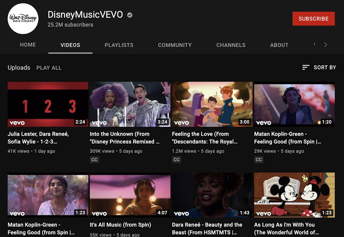 DisneyMusicVEVO Reaches 25 Million Subscribers