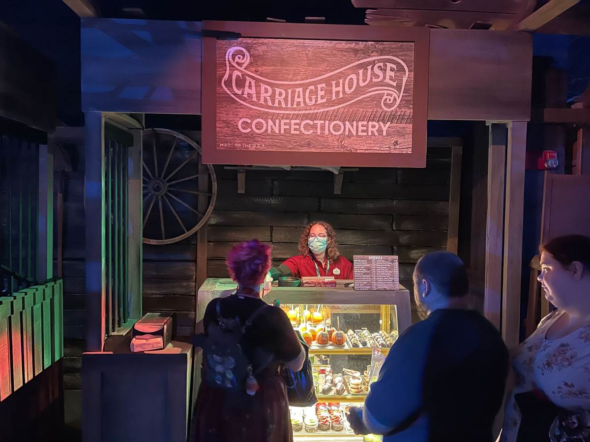 As it has in the past, the Tribute Store offers guests an immersive shopping experience, with incredible theming and a wide variety of merchandise. The store is made up of several different rooms, each with a slightly different theme, though they all come together to create a creepy haunted house (without the actual scares).