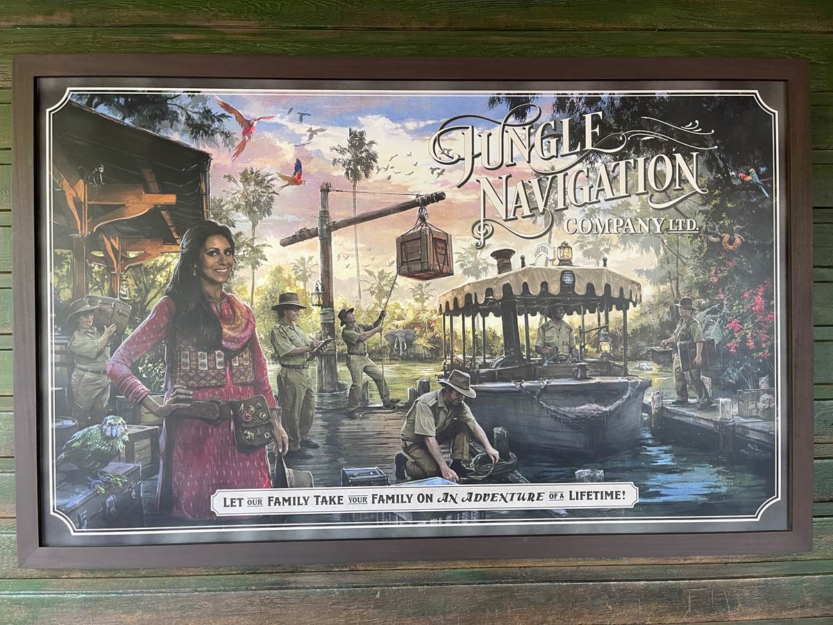This recently installed mural of Alberta Falls and her family of Skippers at the Jungle Cruise inside Magic Kingdom Park is what Disney Imagineers have said marks the completion of the changes at the attraction, introducing the new characters created, new scenes and an expanded storyline as part of the attraction enhancements, establishing Alberta, granddaughter of the world-renowned Dr. Albert Falls, as the proprietor of the Jungle Navigation Company Ltd.