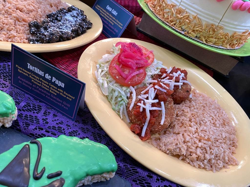 - Tortitas de Papa – Plant-based crispy potato cakes with sautéed spinach, ranchero salsa, golden rice, and pickled onion salsa