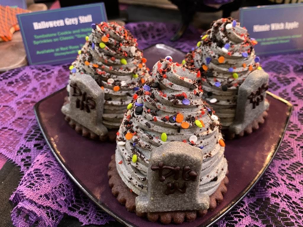 UPDATE (9/3/2021): No tricks here, only a plethora of Halloween treats! We’ve added our own pictures of this year’s offerings including Halloween Grey Stuff, Coco Cake, Minnie Witch Apple and so much more.