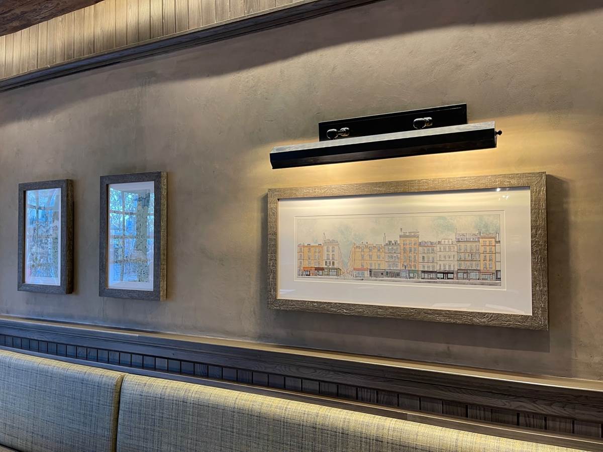- Aside from the food, the restaurant features themed signage for the restrooms.