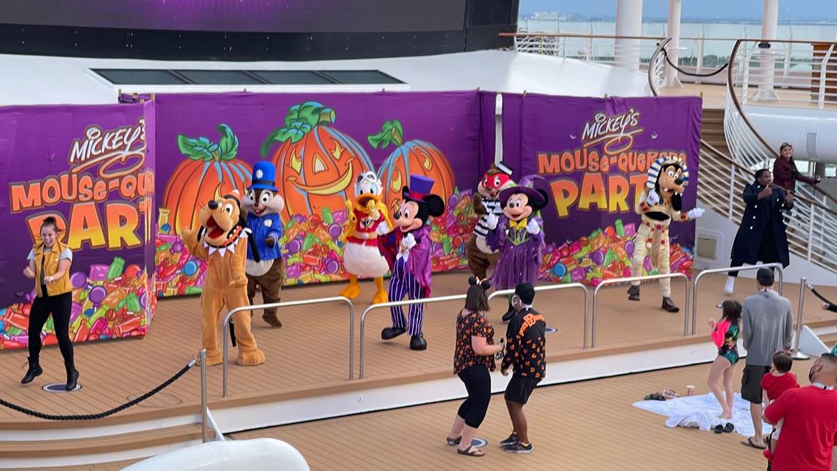 Halloween on the High Seas has returned to Disney Cruise Line. The popular dance party event “Mickey's Mouse-querade” has become a deck party this year, giving more space for Guests to dance around in an open-air environment. The event has been a fan favorite for years and Guests are encouraged to dress in Halloween costumes. Mickey, Minnie, Donald, Goofy, Pluto, Chip, and Dale certainly do!
