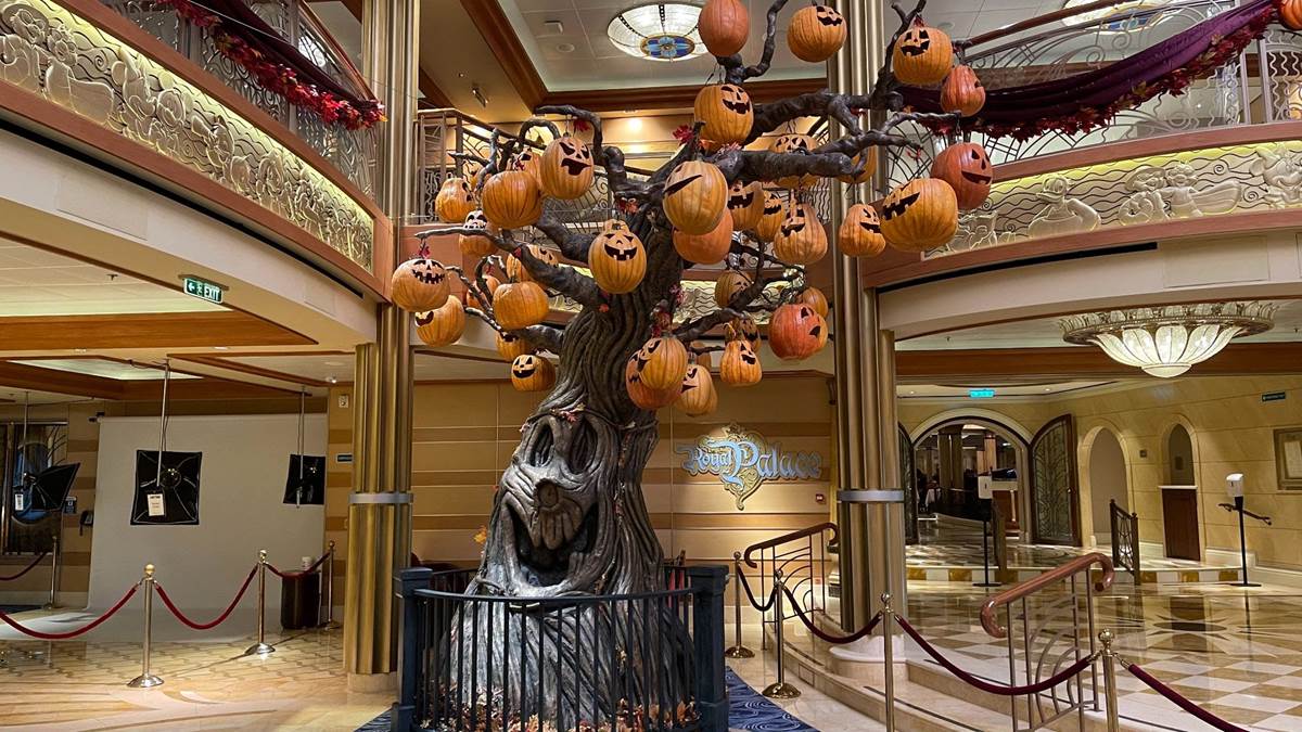 The Halloween fun extends throughout the ship, including a Halloween Tree in the lobby. Inspired by the classic Ray Bradbury novel, the spooky tree’s branches are bedecked with jack-o-lanterns that glow at night. You can’t miss it when you step onboard the Disney Dream and you’ll see it multiple times throughout your sailing, including on the Royal Palace night of your rotational dining schedule.