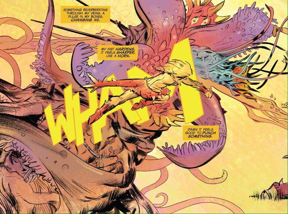 Ka-Zar is dealing with all of that right now as he has returned to his colorful, dinosaur-inhabited home. Hearing every sound and feeling every being in such a chaotic land can’t be easy, but the Lord of the Savage Land has no other choice. This is what his life has to be now.