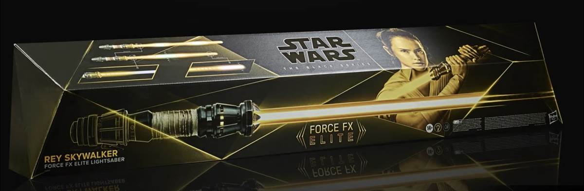 As part of the Force FX Elite, a highly detailed new lightsaber belonging to Rey Skywalker that is perfect for Role Playing. It also marks the first time that (spoiler alert) we see the full name of “Rey Skywalker” on any Hasbro packaging.