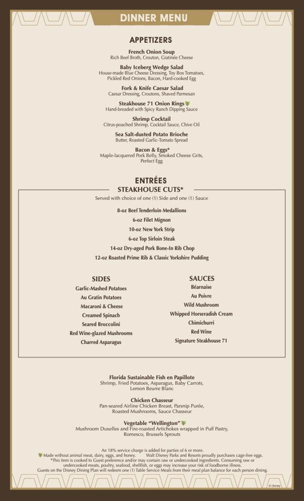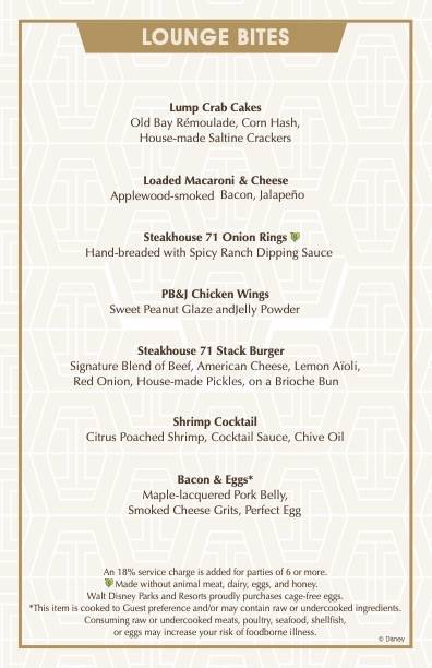 - Steakhouse 71 will also offer a selection of “Disney Family of Wines,” a diverse collection of wines with a personal connection to the Disney name. The wineries display qualities long identified with Walt Disney and The Walt Disney Company – passion, innovation, and quality.