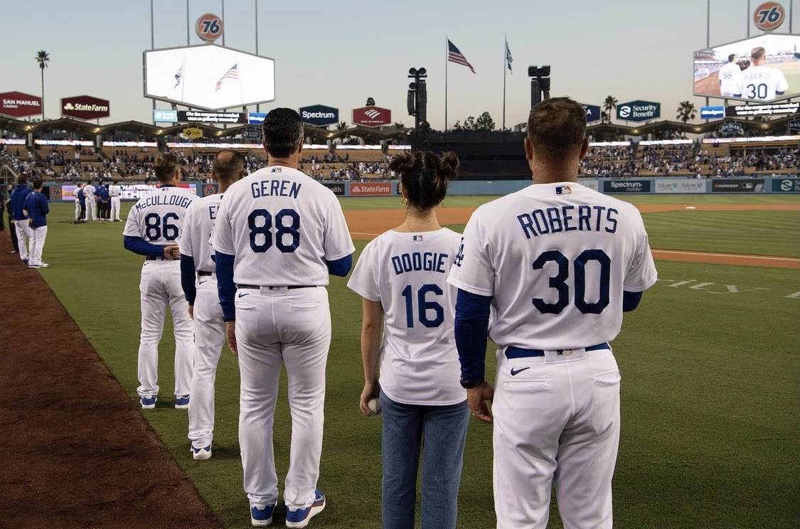 - Last night, Peyton Elizabeth Lee, star of the Disney+ Original Series Doogie Kamealoha, M.D. threw out the first pitch at the Los Angeles Dodgers versus Arizona Diamondbacks game at Dodger Stadium.