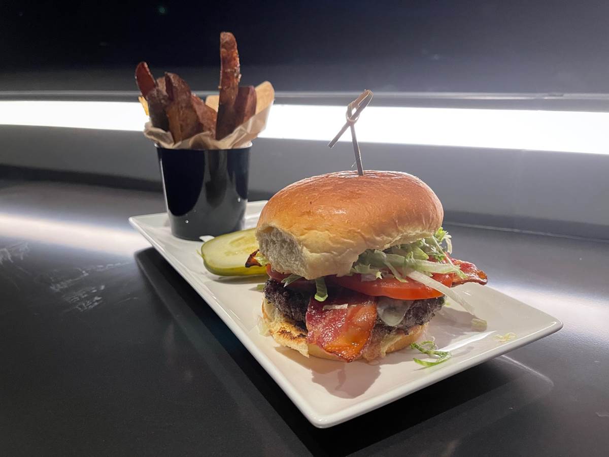 Here is a look at the Centauri Burger (Signature Beef Blend, White Cheddar Cheese, Bacon, Shredded Lettuce, Tomatoes, Fried Potato Wedges, Sriracha Aioli).