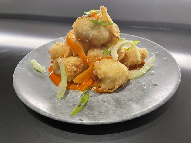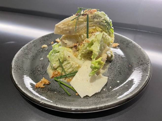 Jeremiah started with the Centauri Caesar Salad (Miniature Romaine, Classic Caesar Dressing, Parmigiano Reggiano) and Blue Moon Cauliflower (Tempura Fried Cauliflower, Housemade Hot Sauce, Blue Cheese Dust).