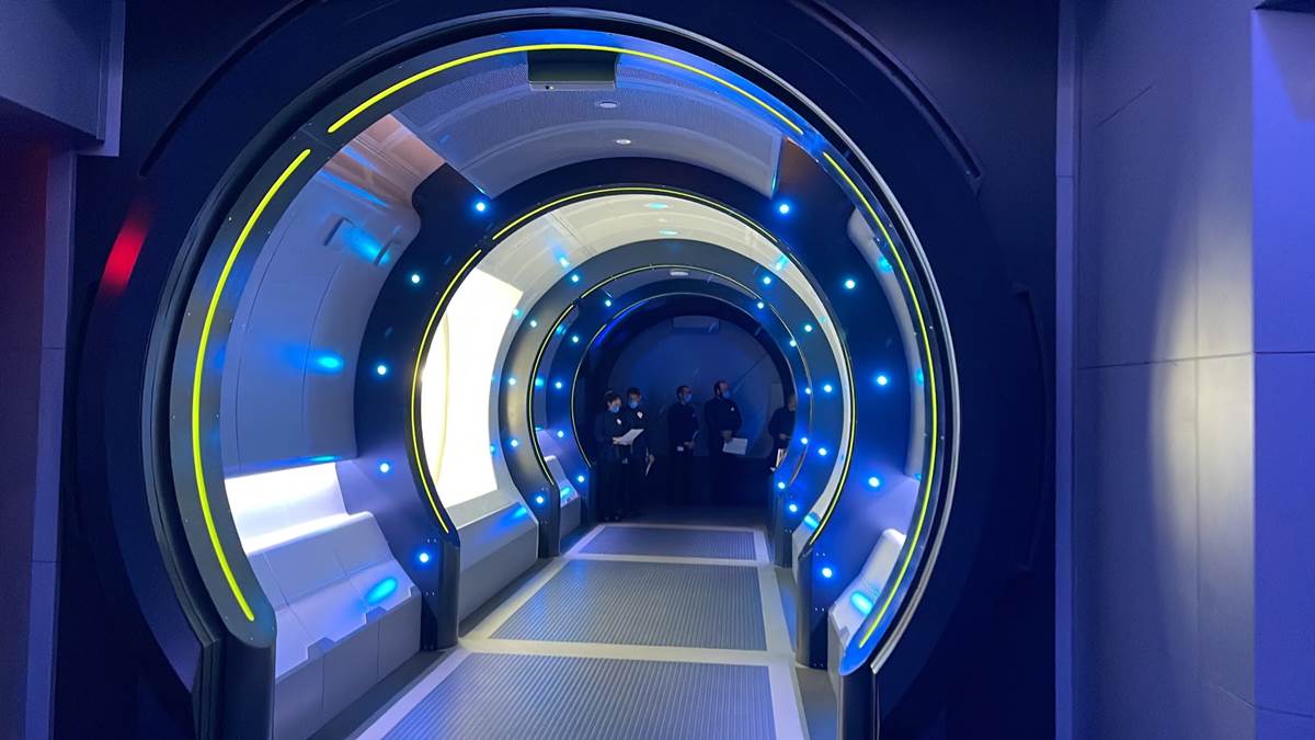 Once docked, you will head to the Centauri Space Station-themed dining area, featuring panoramic views of Earth along with a variety of work and leisure activities taking place outside.