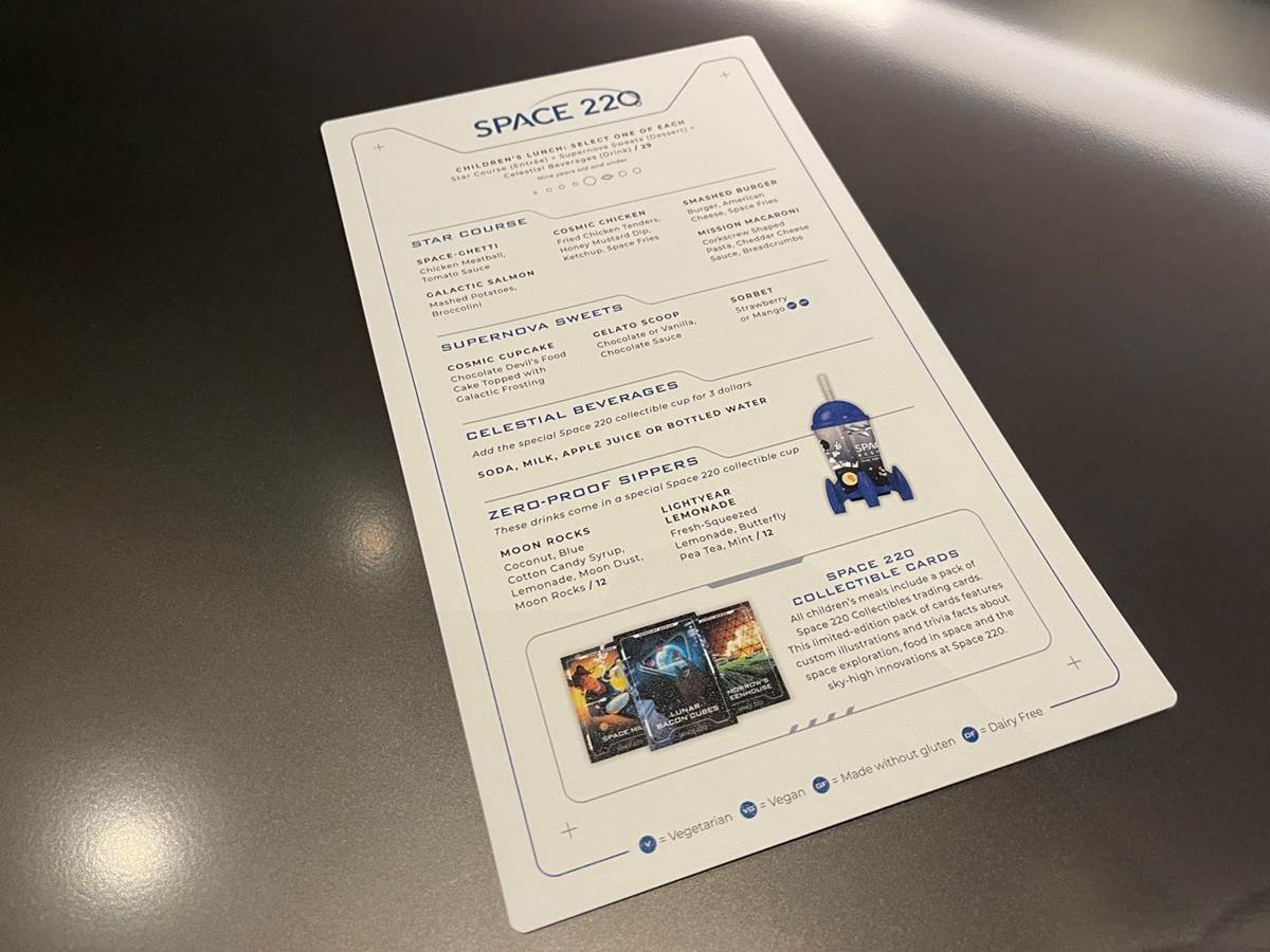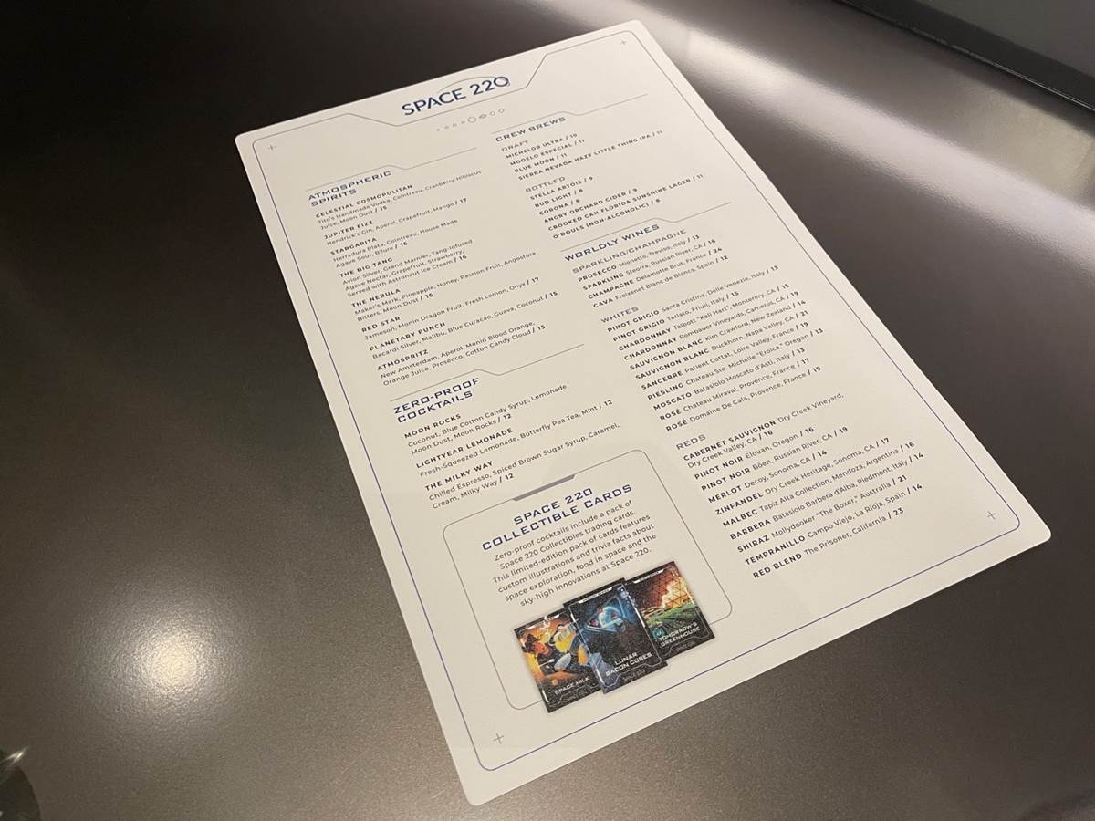 With the purchase of any zero proof (non-alcoholic) cocktail or children’s meal, Guests receive a pack of Space 220 trading cards, designed exclusively for the restaurant.
