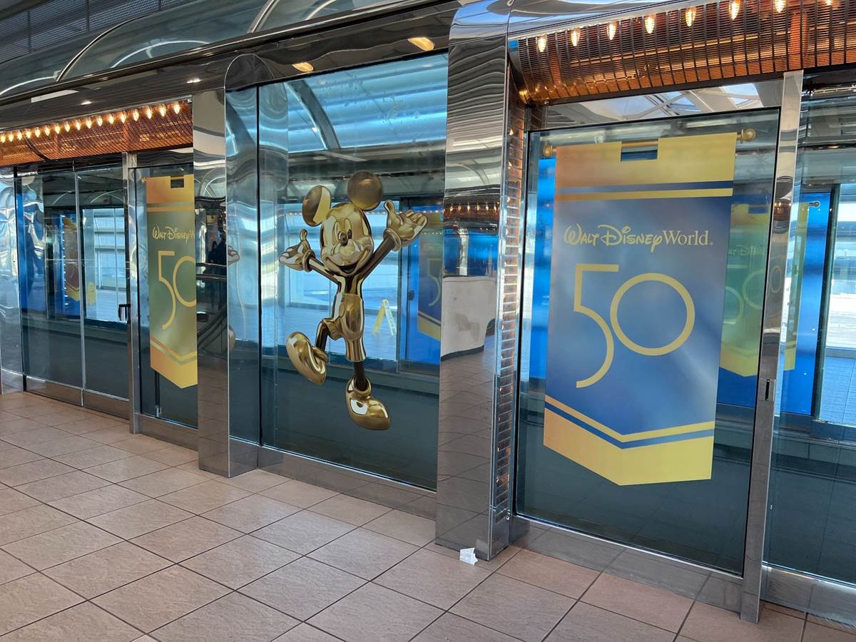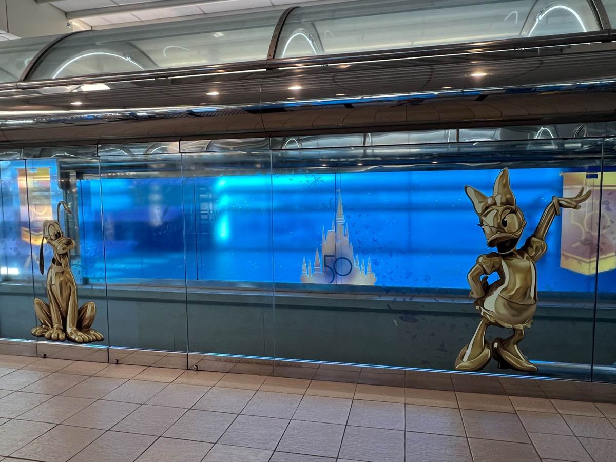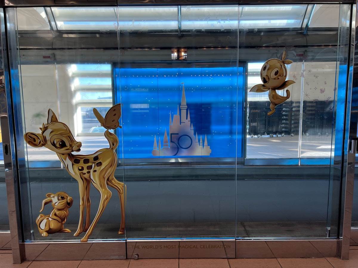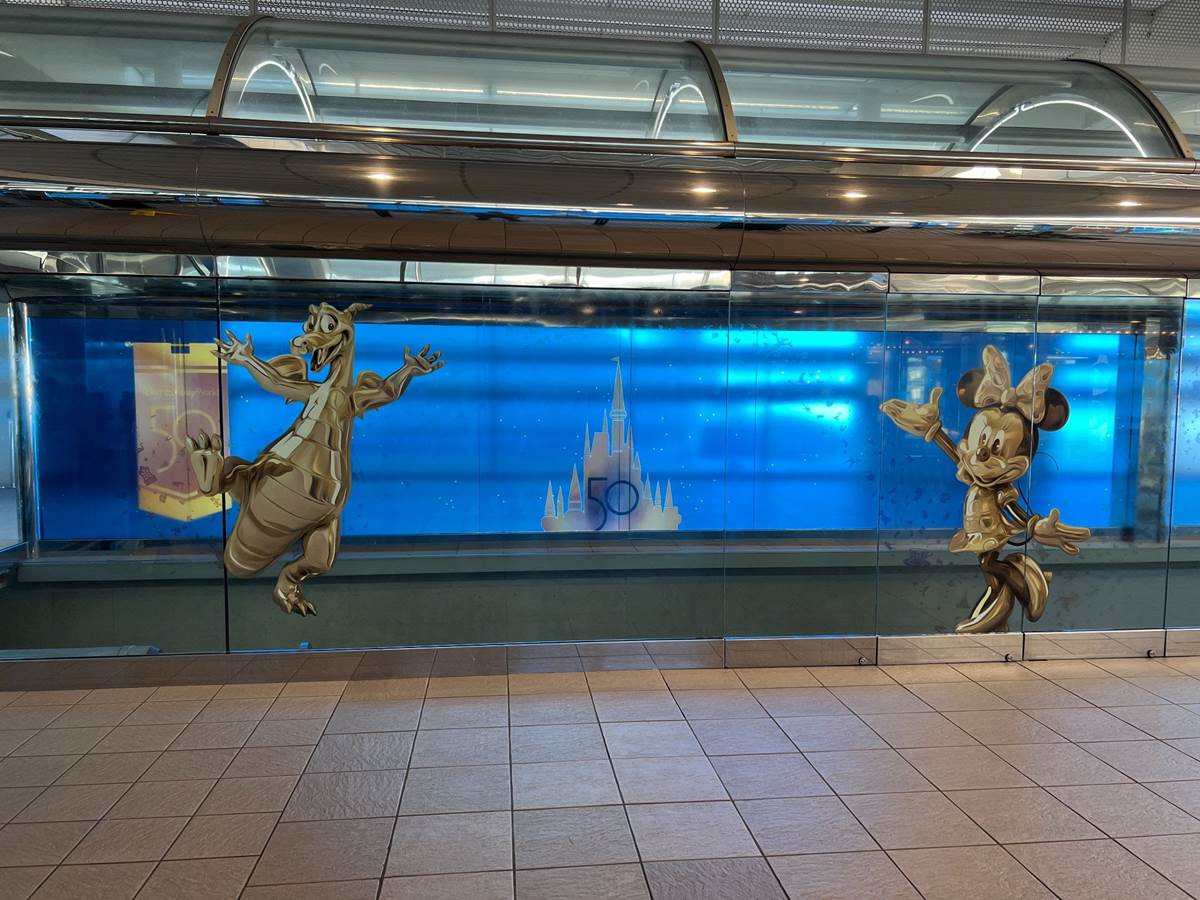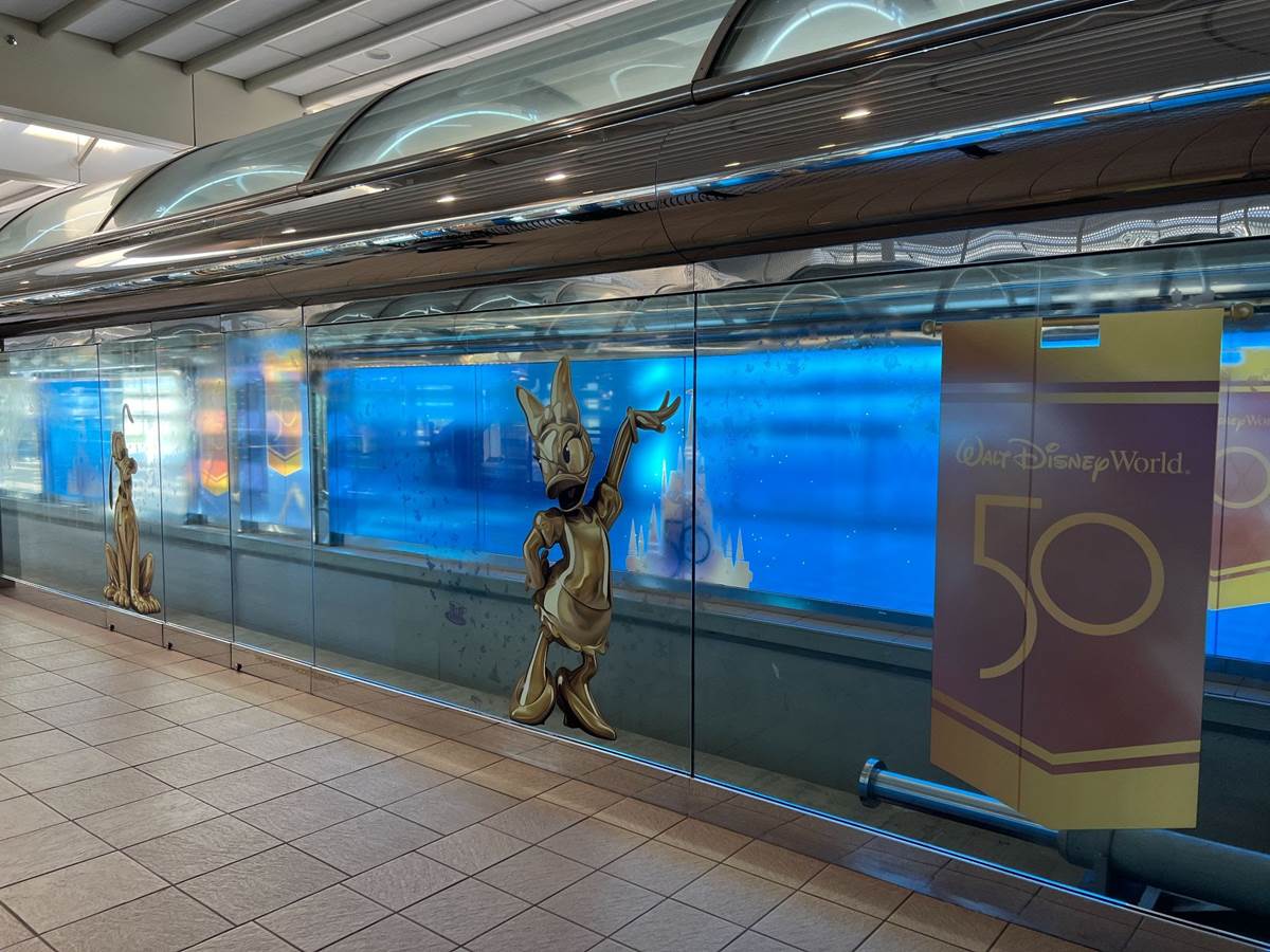 We were able to get out to the Orlando International Airport today to check out some of the new World’s Most Magical Celebration that welcome guests who are arriving to celebrate the 50th anniversary of Walt Disney World. Take a look at some of our photos below: