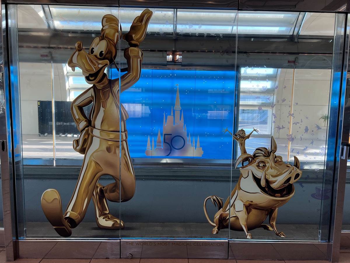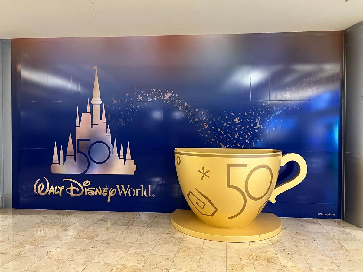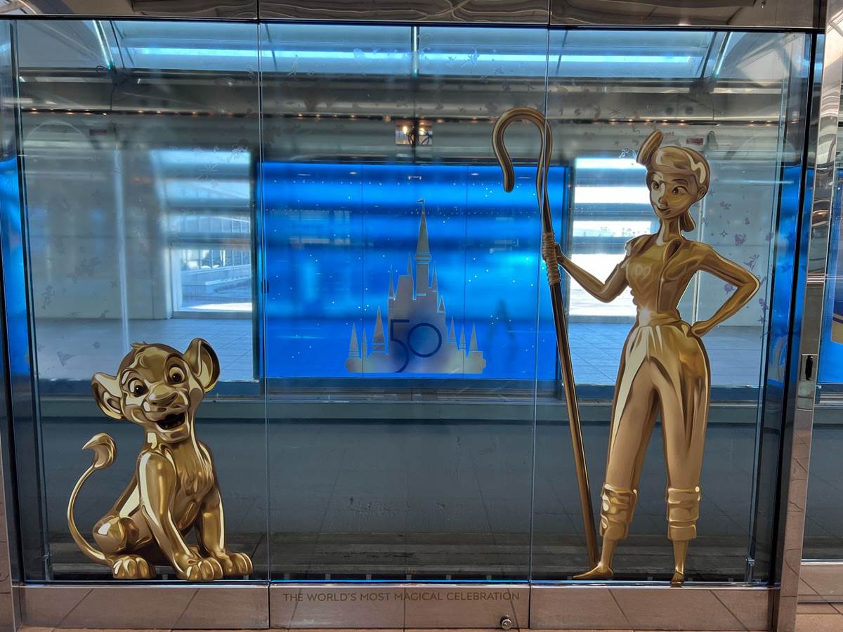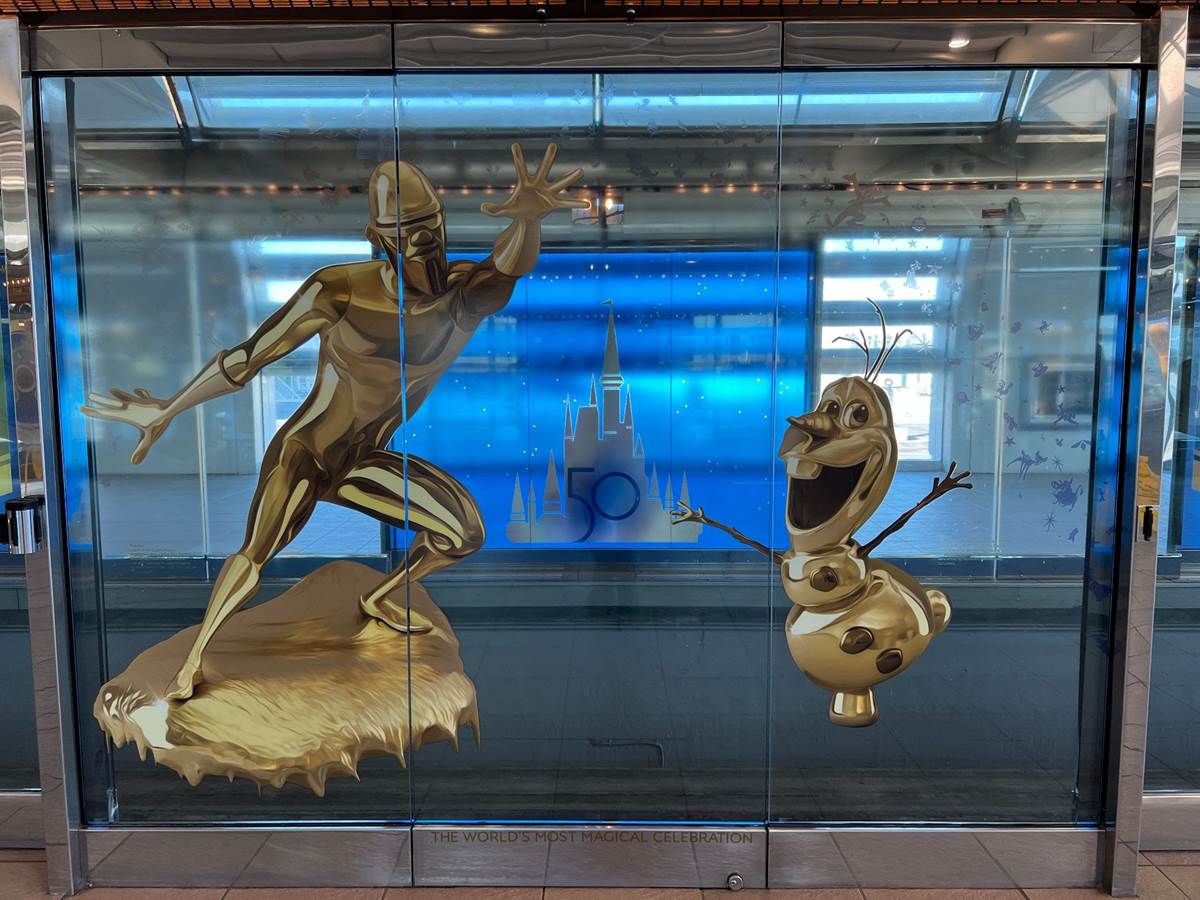 We were able to get out to the Orlando International Airport today to check out some of the new World’s Most Magical Celebration that welcome guests who are arriving to celebrate the 50th anniversary of Walt Disney World. Take a look at some of our photos below: