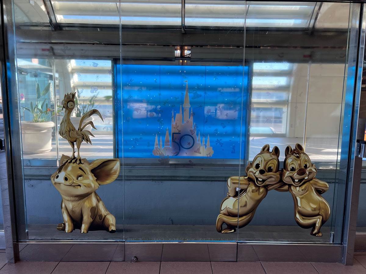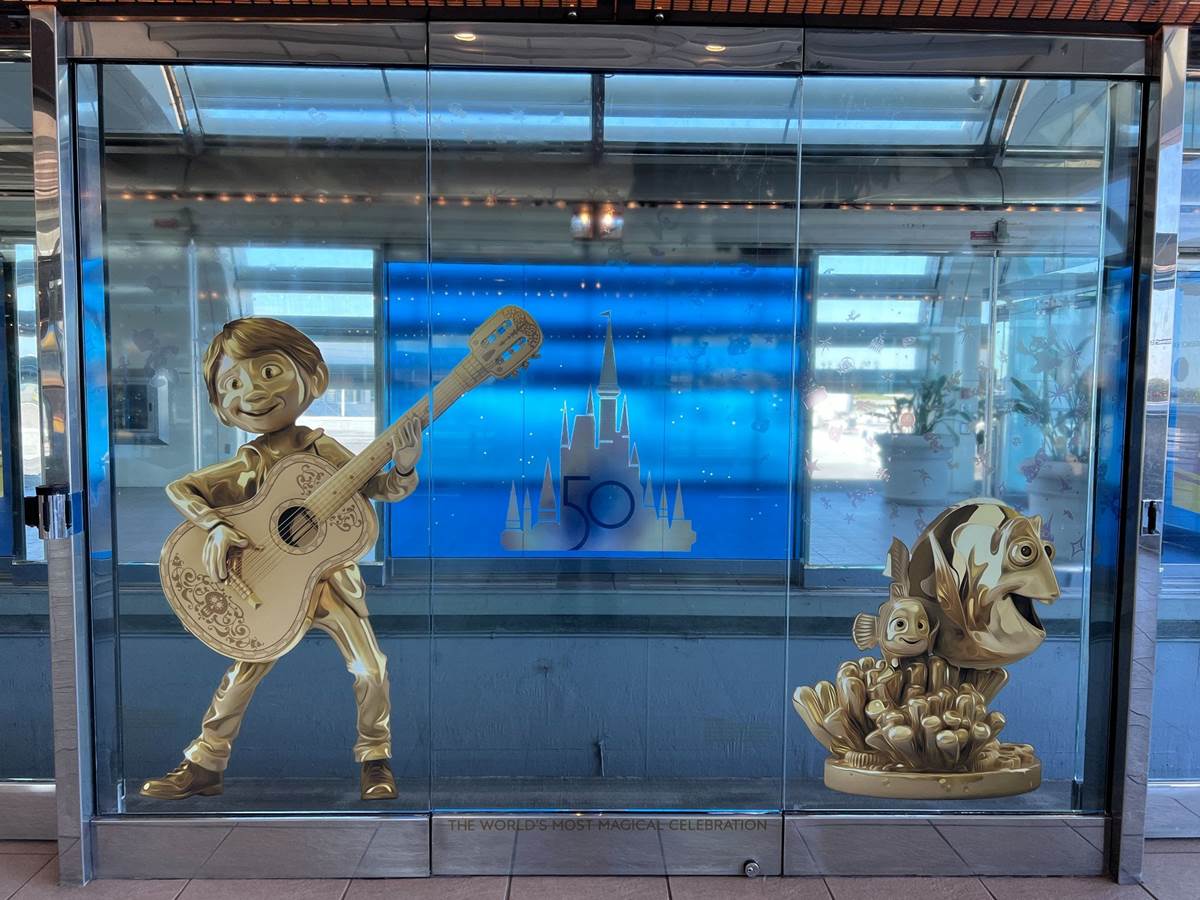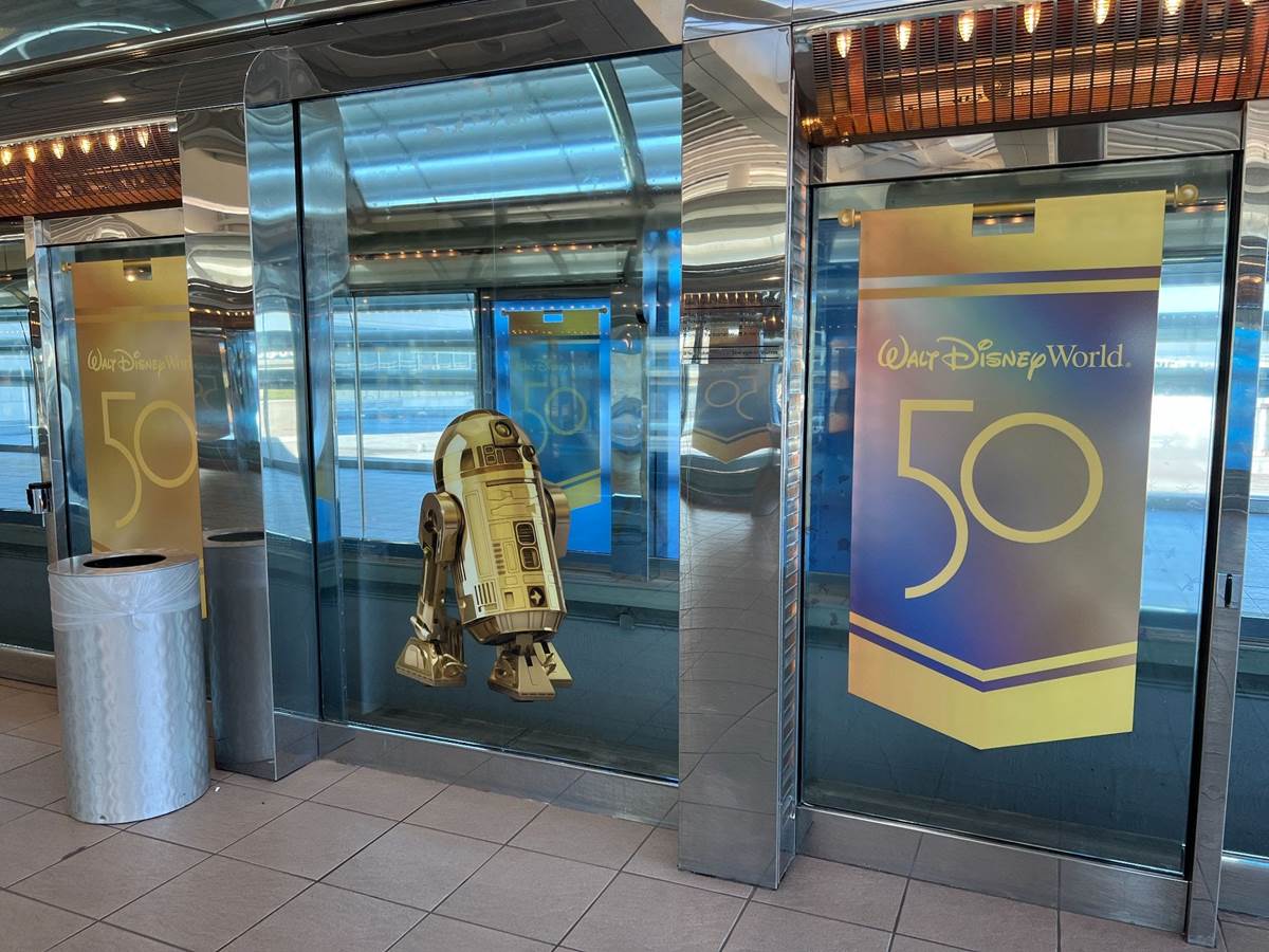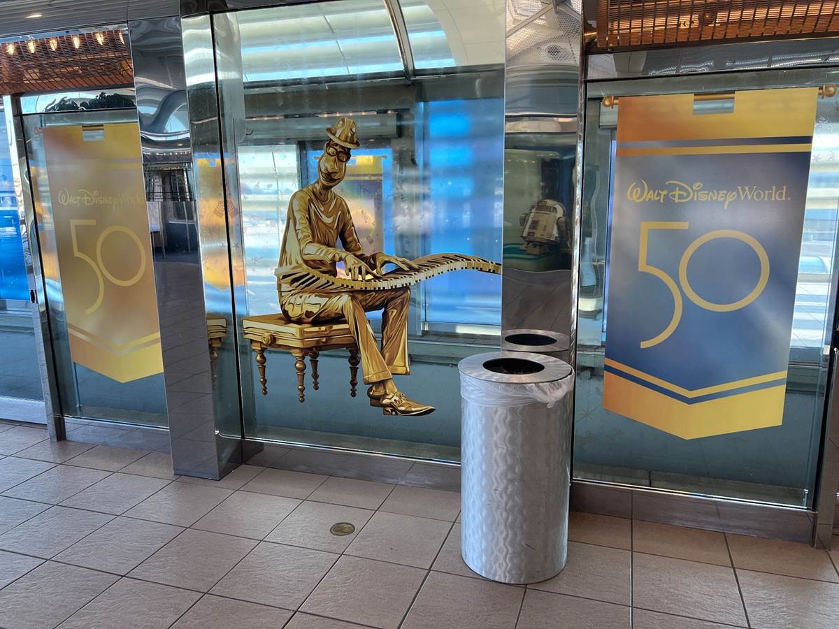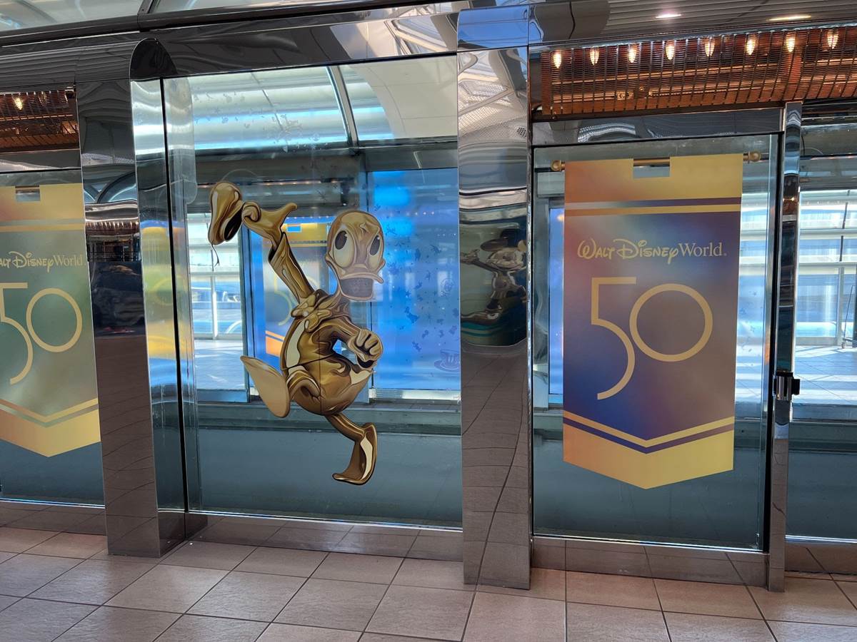We were able to get out to the Orlando International Airport today to check out some of the new World’s Most Magical Celebration that welcome guests who are arriving to celebrate the 50th anniversary of Walt Disney World. Take a look at some of our photos below: