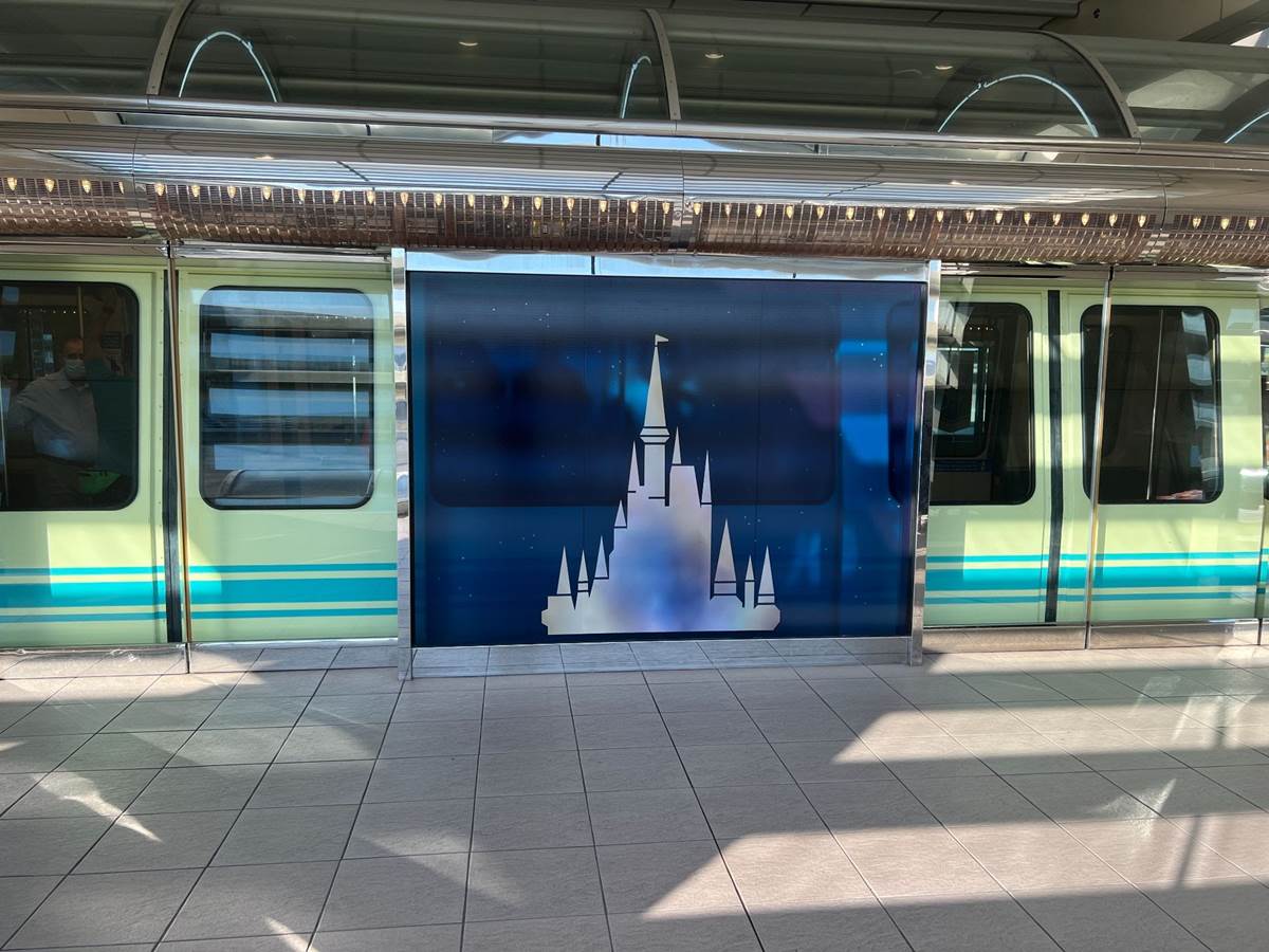 Walt Disney World guests will experience some of the fun of the World’s Most Magical Celebration as soon as they land at Orlando International Airport thanks to new art installations on the terminal train and a photo op!