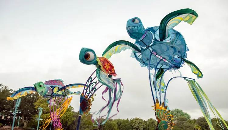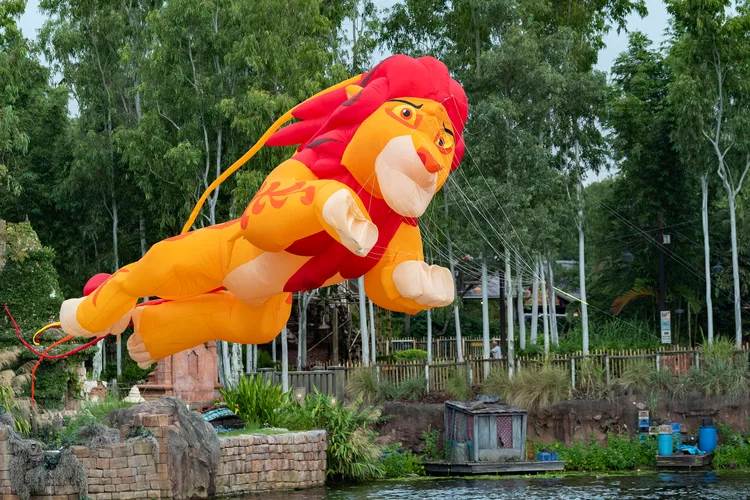 From one performance to another, you may see Baloo the bear dancing in the sky or Zazu the red-billed hornbill chasing after Simba. These remarkable kites, some as large as 30 feet in length, are inflated by moving through the air, allowing characters like King Louie or Timon and Pumbaa to soar like never before!