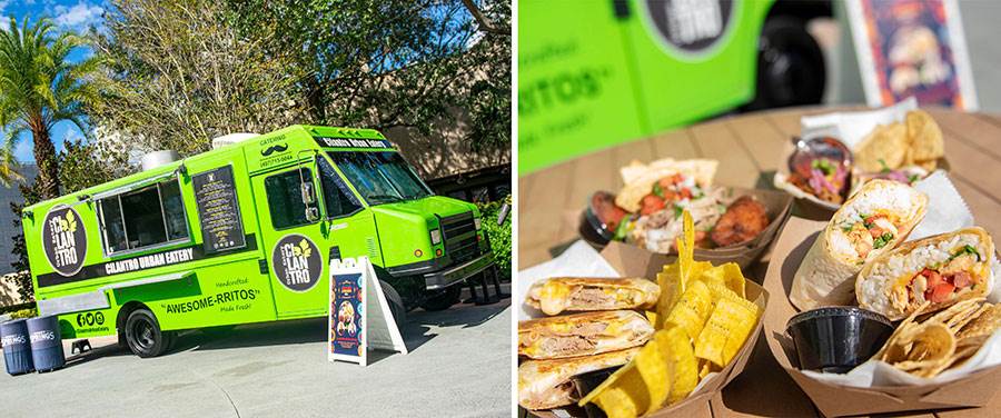 - At Disney Springs, featuring visiting food truck, Cilantro Urban Eatery, celebrates Latin Street Food by offering infused Venezuelan, Puerto Rican, Mexican, and American cuisine including burritos, rice bowls, urban tacos, salads, and quesadillas.