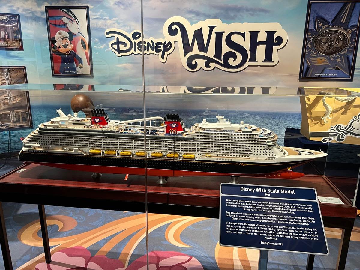 - On display is a scale model of the Disney Wish, as well as the Rapunzel figure which will be featured on the stern of the ship.